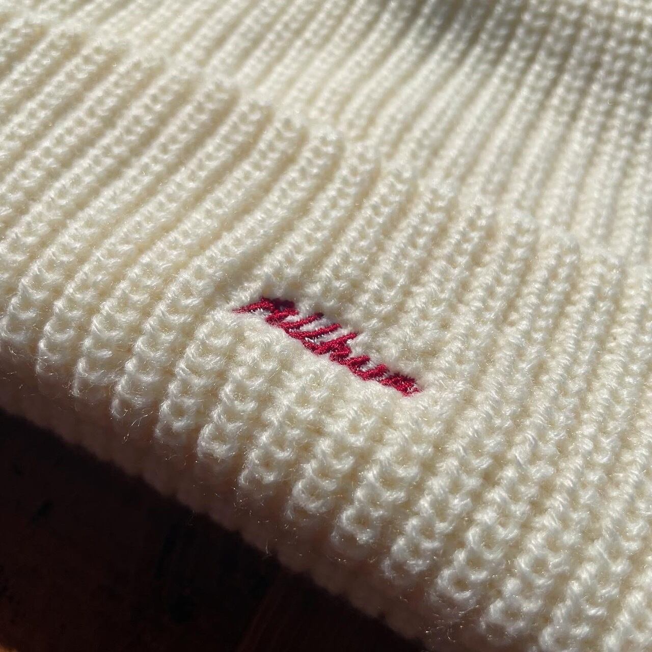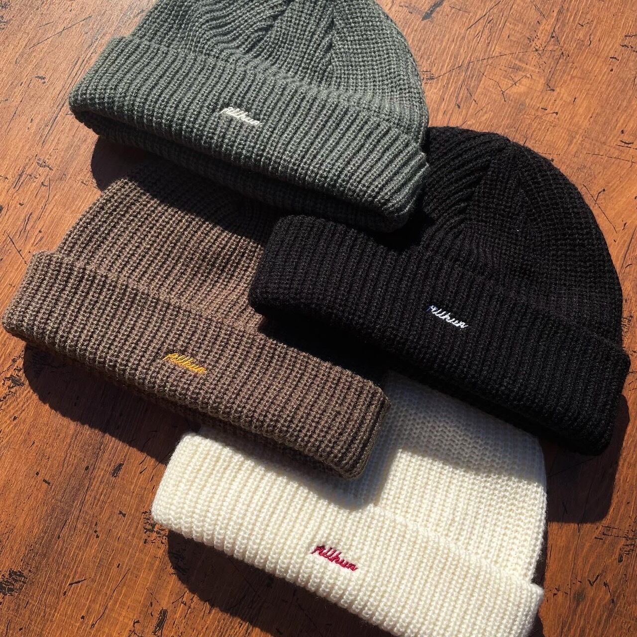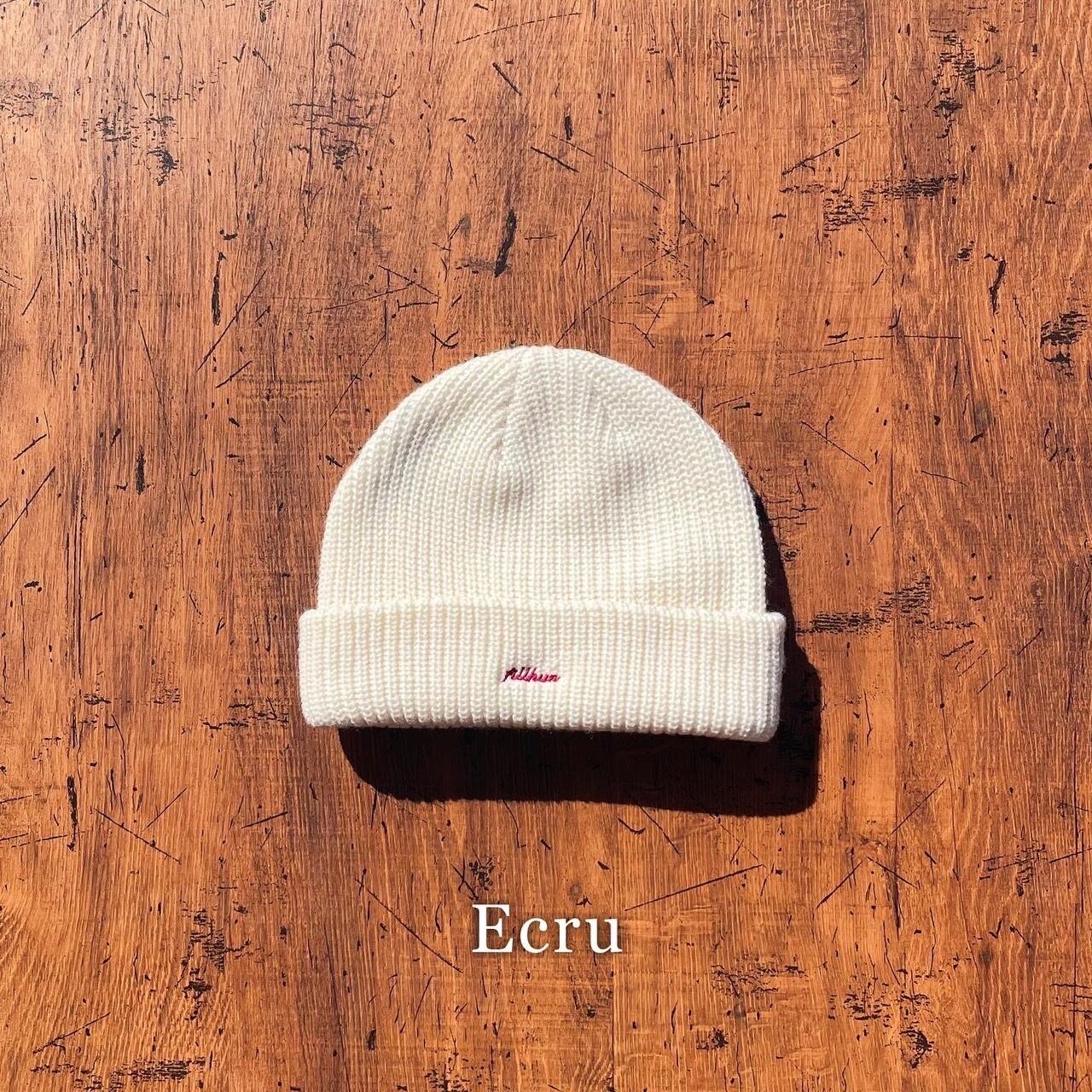 アクリルニット素材、ローゲージ、長すぎず被りやすい深さとなっています。