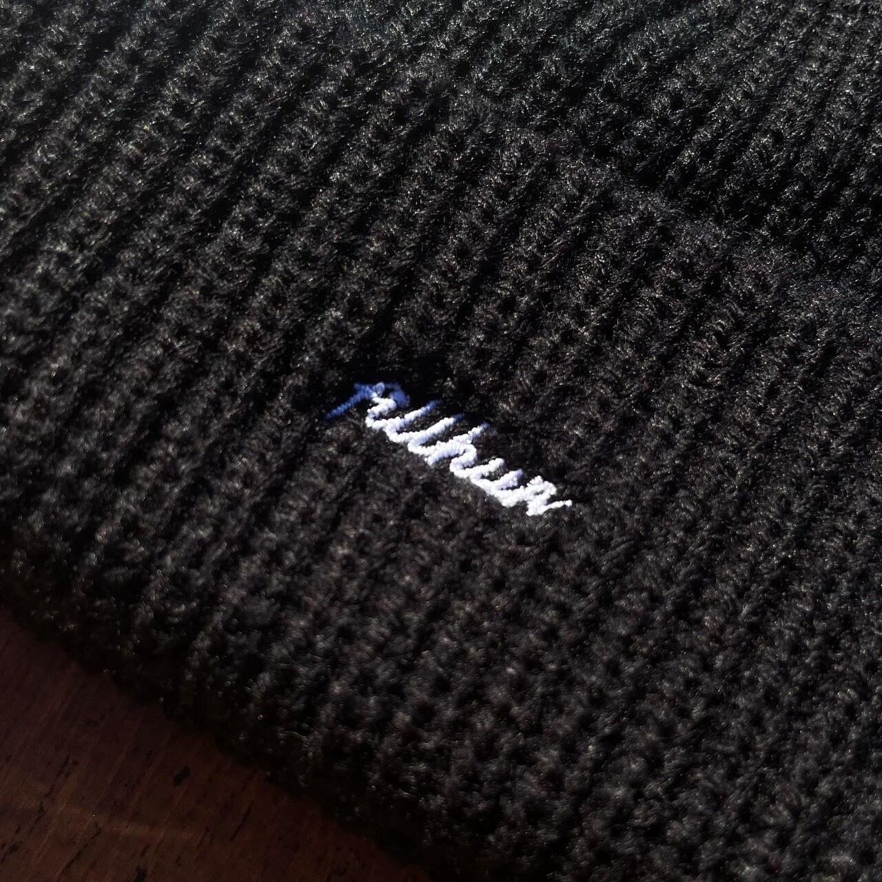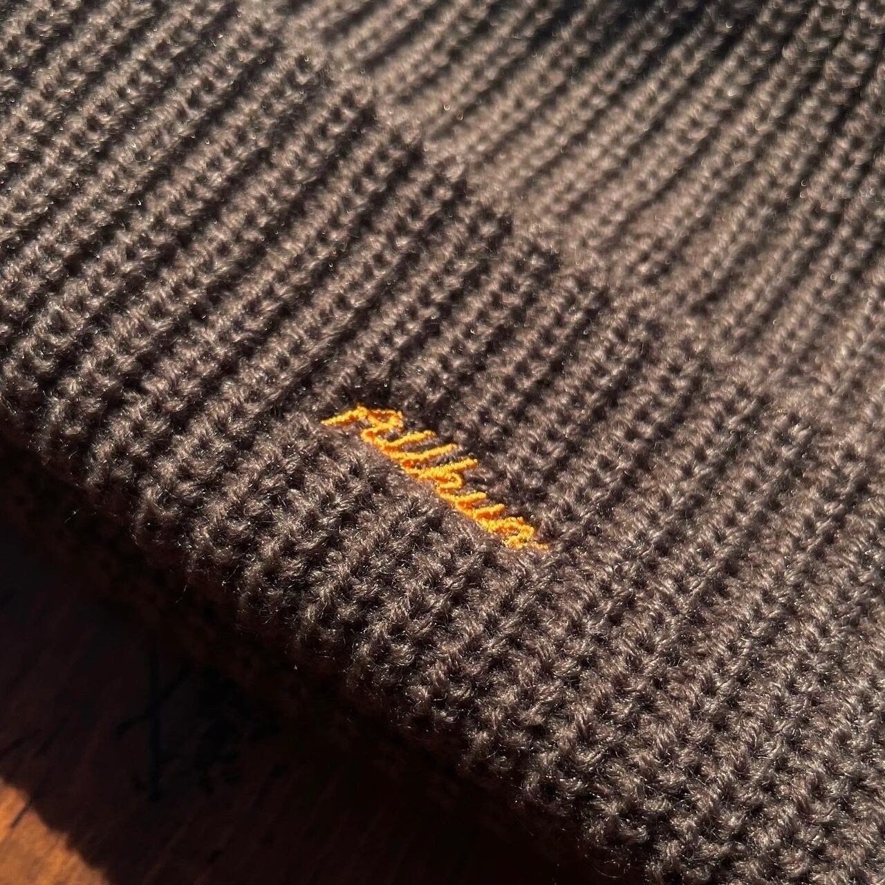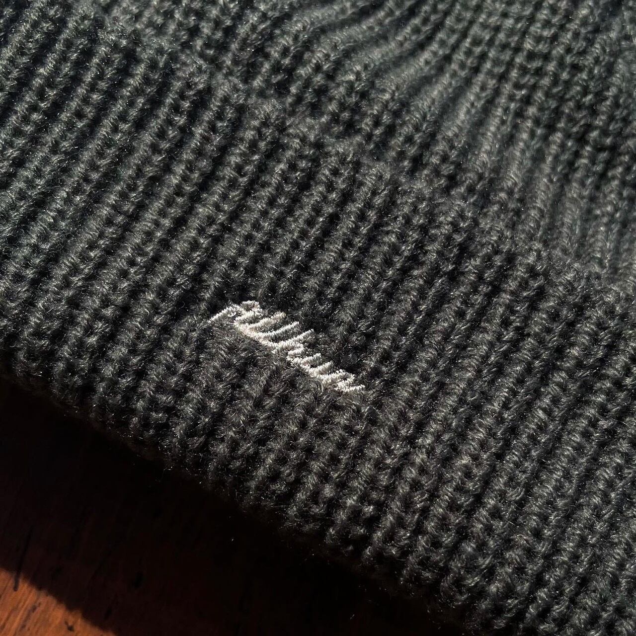 アクリルニット素材、ローゲージ、長すぎず被りやすい深さとなっています。